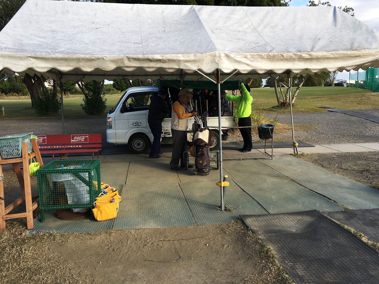 Schon früh machte ich mich an einem sonnigen und mit ca. 15 Grad doch recht angenehmen Samstag morgen von meinem Hotel in Richtung Golfplatz auf. Das sagenumwobene Tokioter U-Bahn-Netz erstreckte sich tatsächlich so weit, sodass eine Anreise mit öffentlichen Verkehrsmitteln problemlos möglich war. Zu meiner Überraschung erspähte ich bereits in der U-Bahn eine nicht unerhebliche Anzahl Japaner, die mit ihrem Golfbag wohl ebenfalls auf dem Weg zu einem Golfplatz waren. Am Zielbahnhof angekommen wurde ich zusammen mit weiteren Gästen des Golfclubs von einem eigens für diesen Zweck bereitgestellten Shuttlebus abgeholt und zum nahegelegenen Golfclub gebracht. Noch vor Betreten des Clubhauses wurde das Golfgepäck der Golfer für den späteren Transport zum ersten Abschlag entgegen genommen.